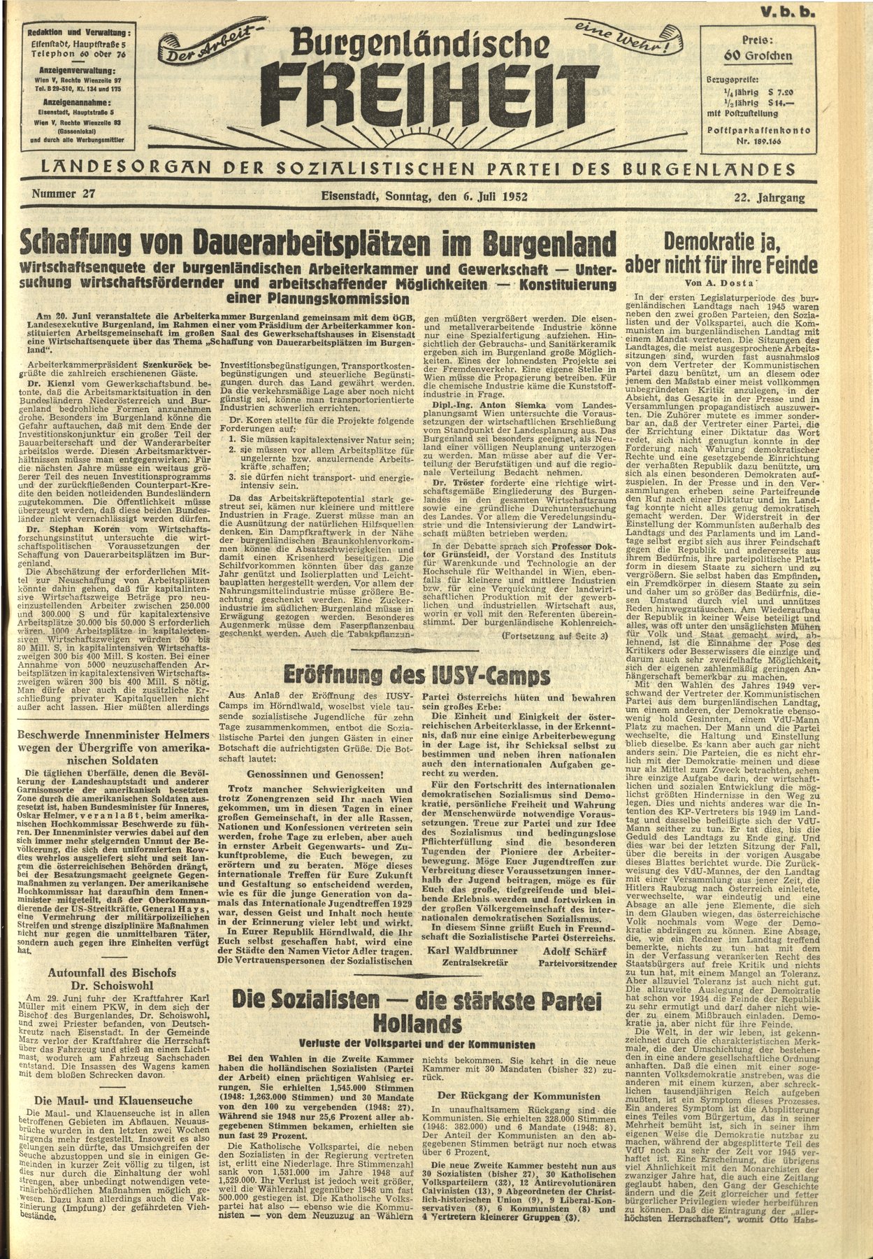 NR.27, 6. Juli 1952, 22.Jahrgang