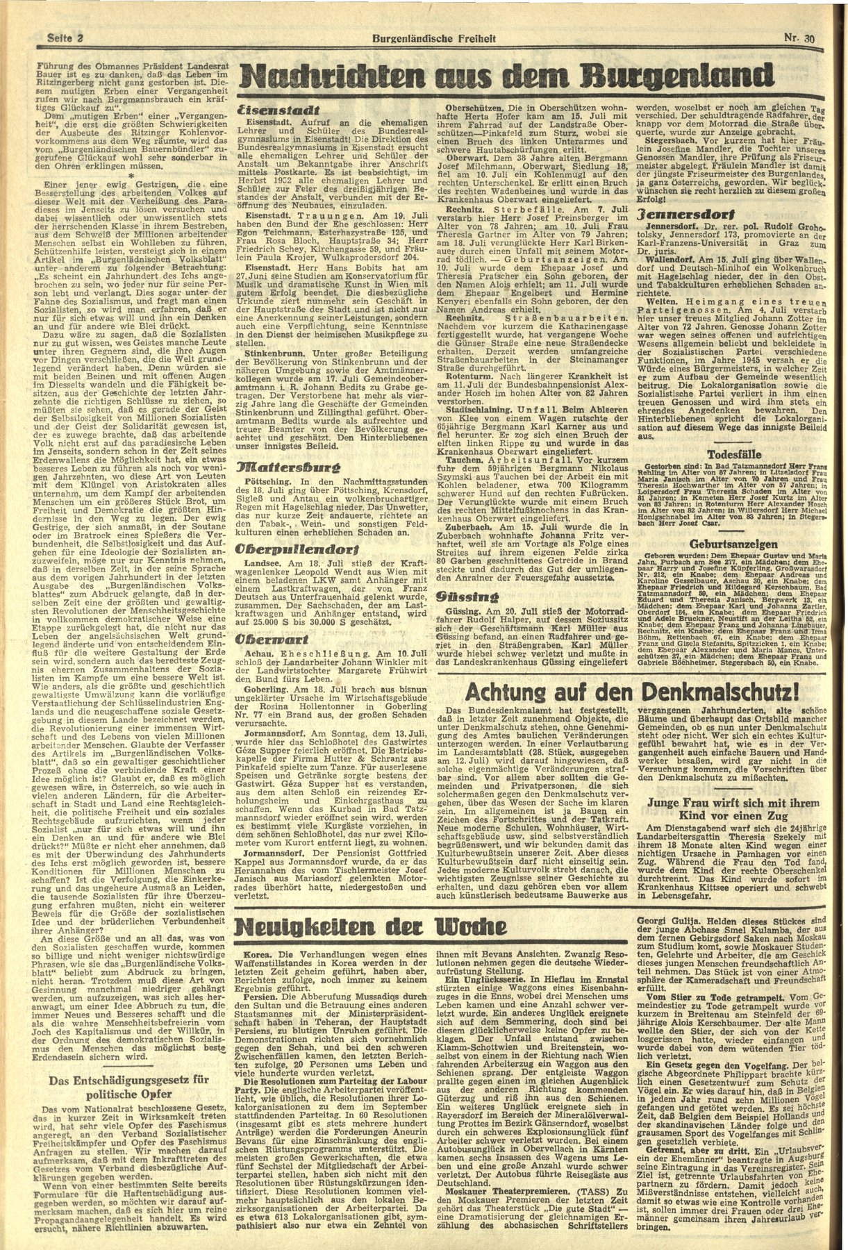 NR.30, 27. Juli 1952, 22.Jahrgang