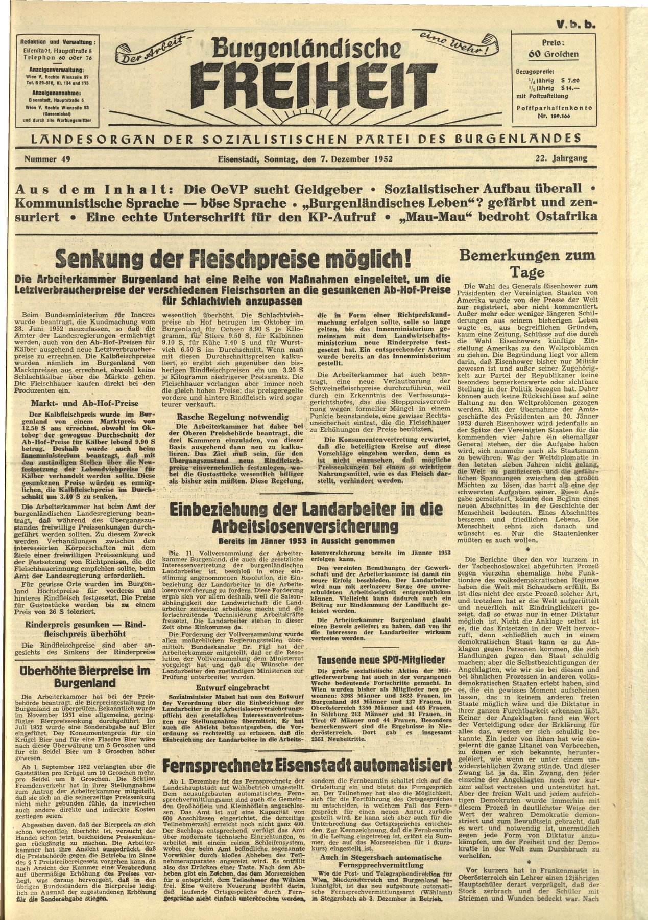 NR.49, 7. Dezember 1952, 22.Jahrgang