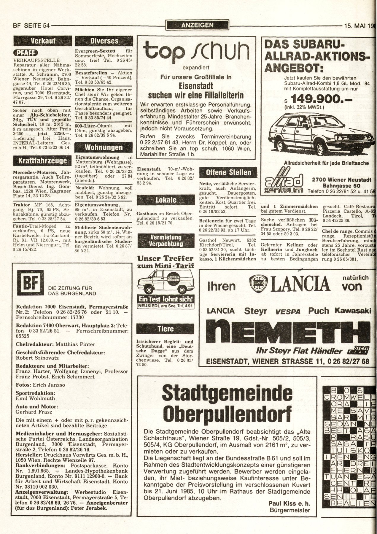 NR.20, 15. Mai 1985, 55.Jahrgang