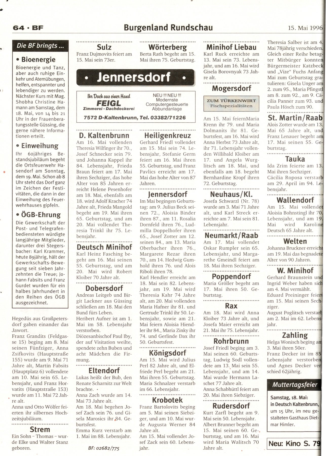 NR.20, 15. Mai 1996, 66.Jahrgang