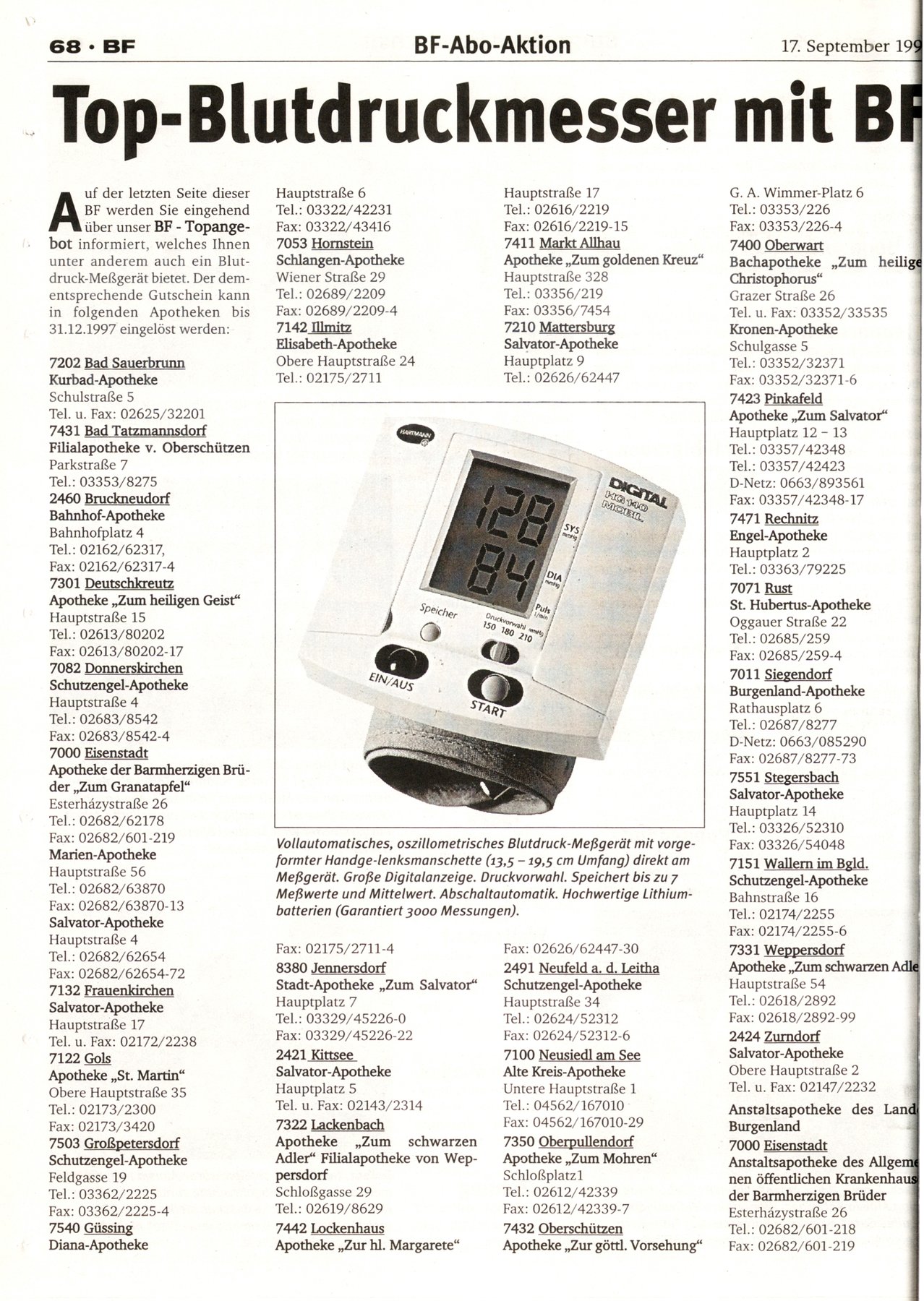 NR.38, 17. September 1997, 67.Jahrgang