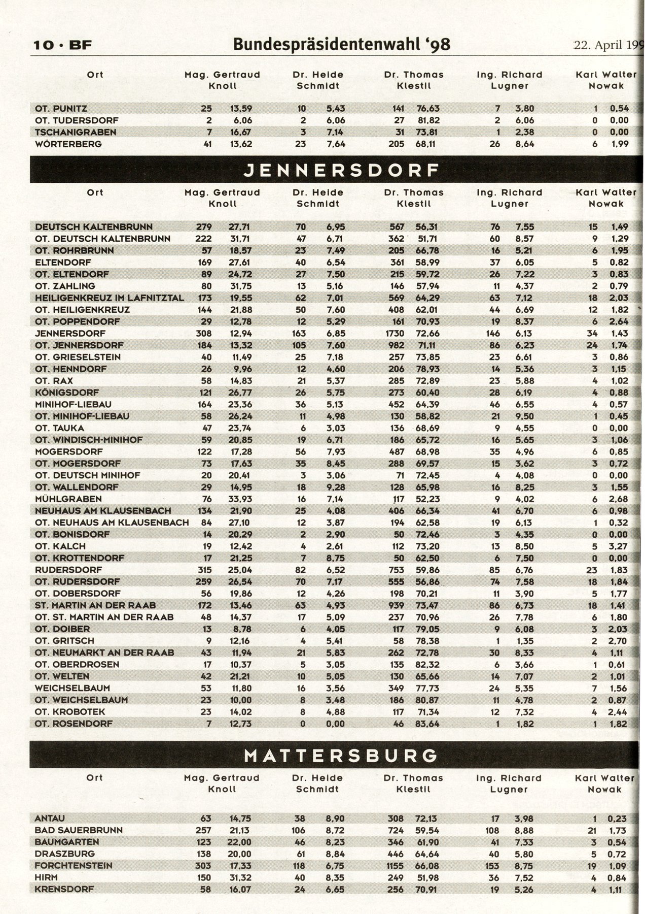 NR.17, 22. April 1998, 67.Jahrgang