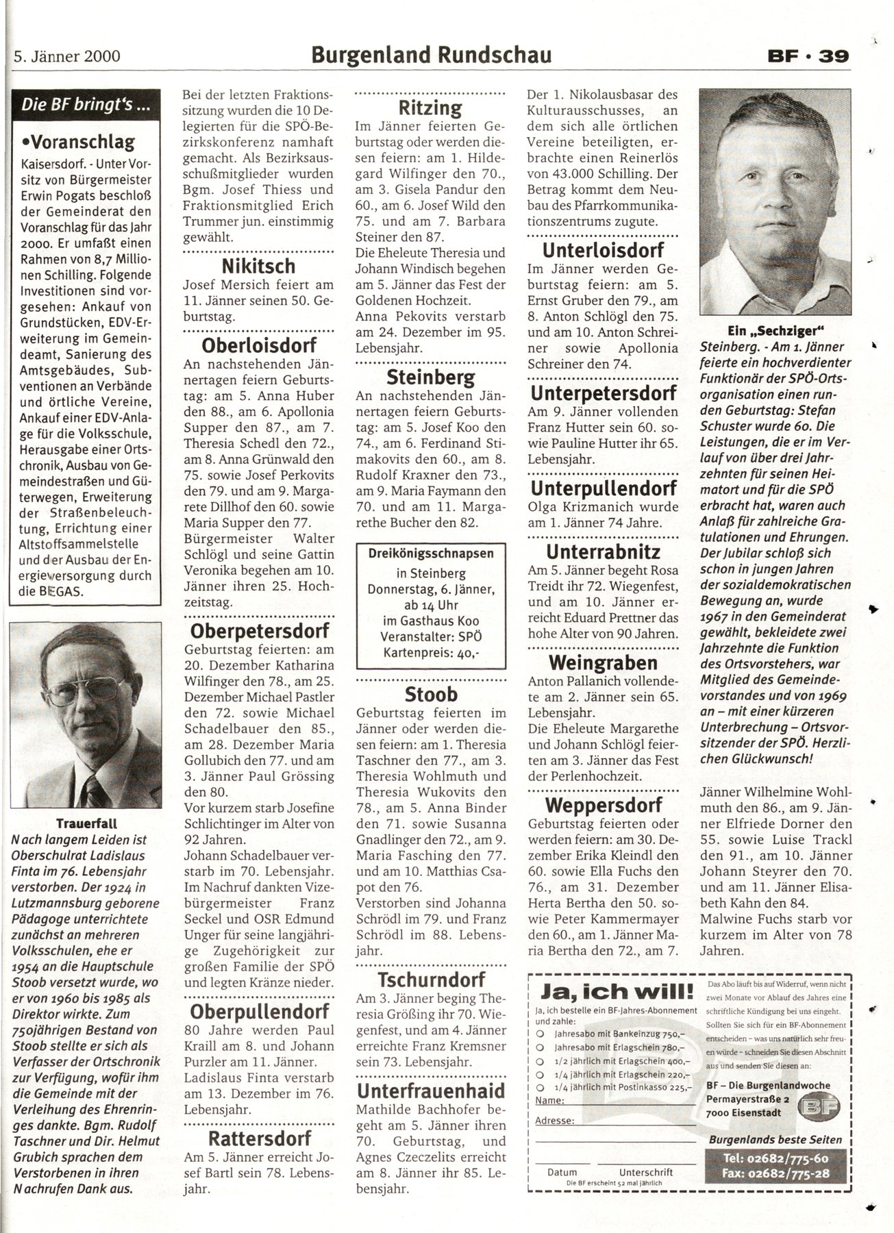 NR.1, 5. Januar 2000, 70.Jahrgang
