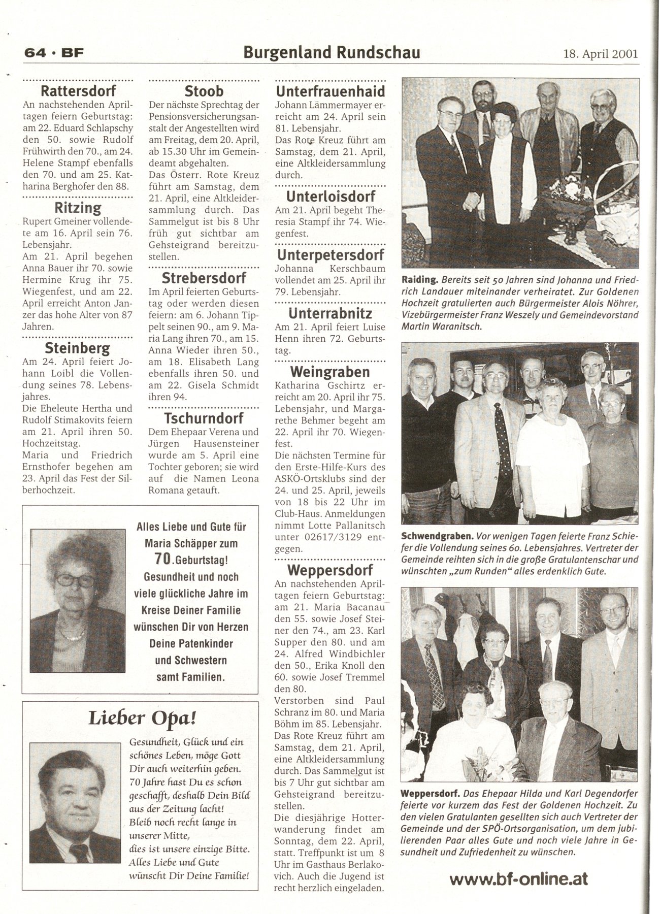 NR.16, 18. April 2001, 71.Jahrgang