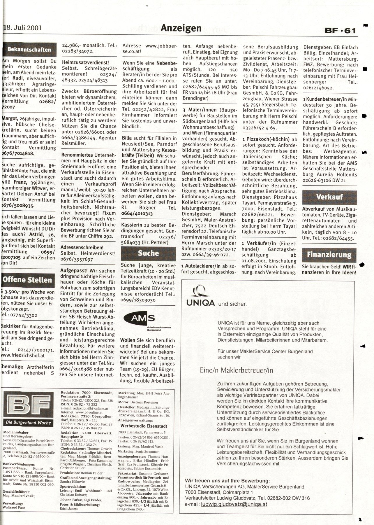 NR.29, 18. Juli 2001, 71.Jahrgang