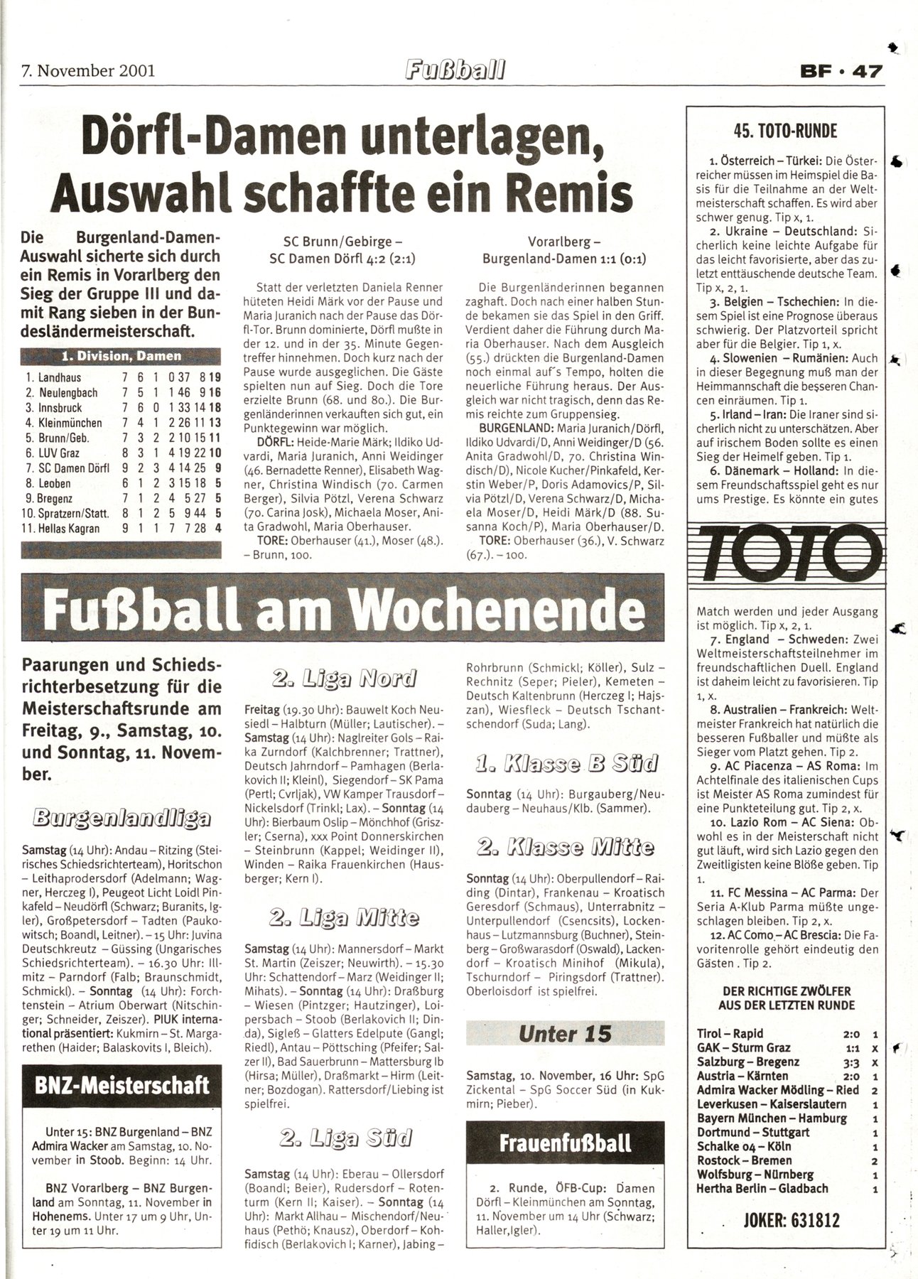 NR.45, 7. November 2001, 71.Jahrgang