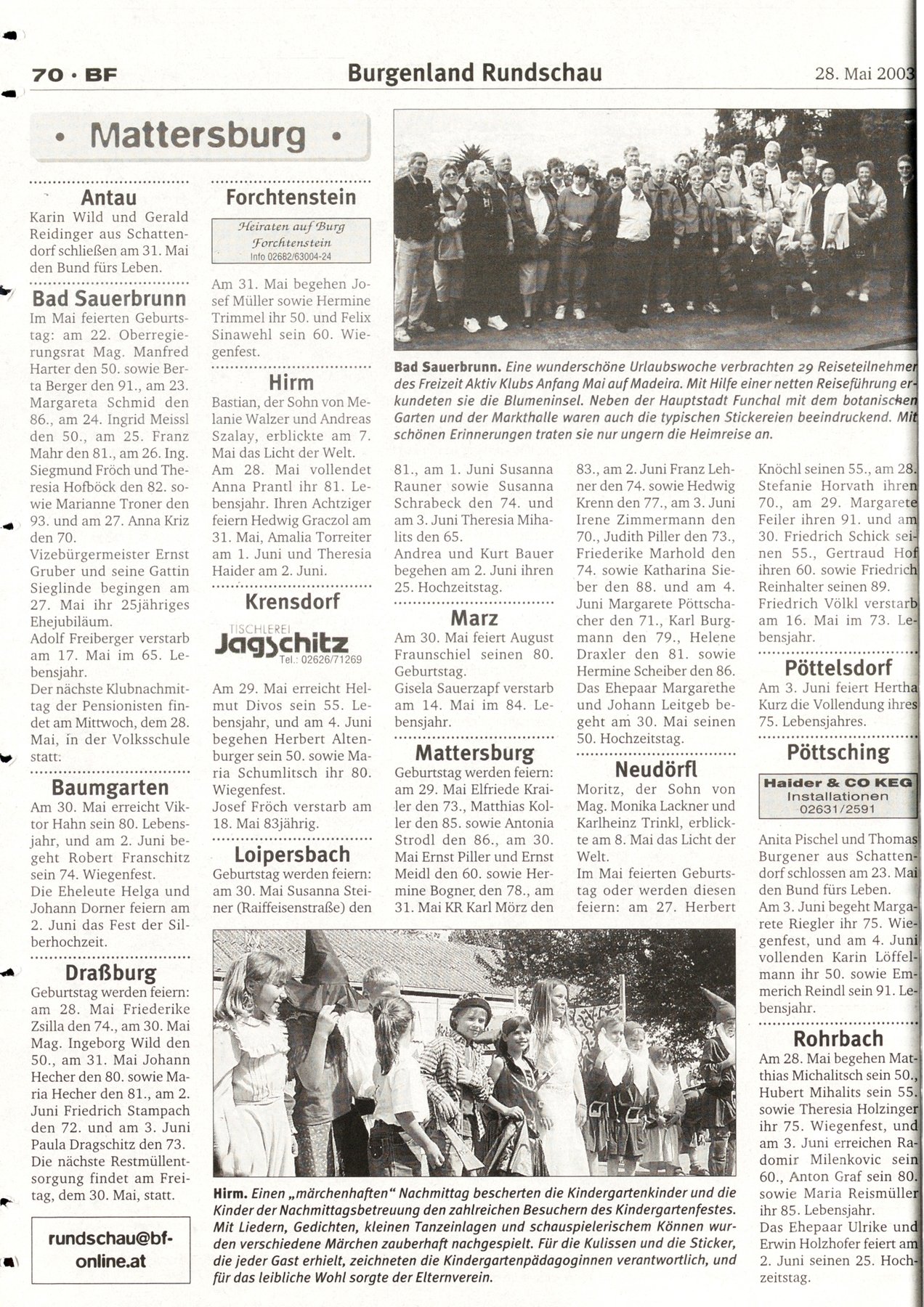 NR.22, 28. Mai 2003, 73.Jahrgang