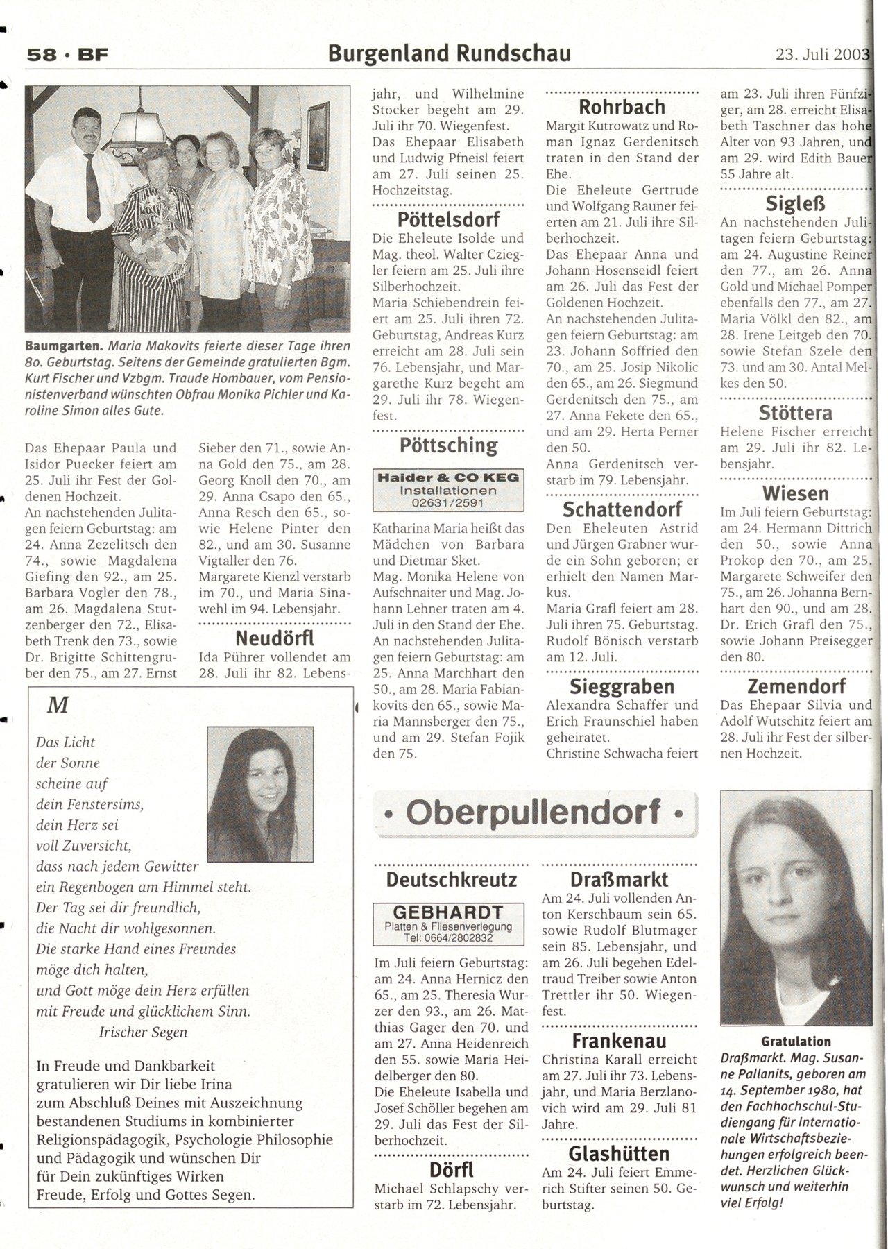 NR.30, 23. Juli 2003, 73.Jahrgang