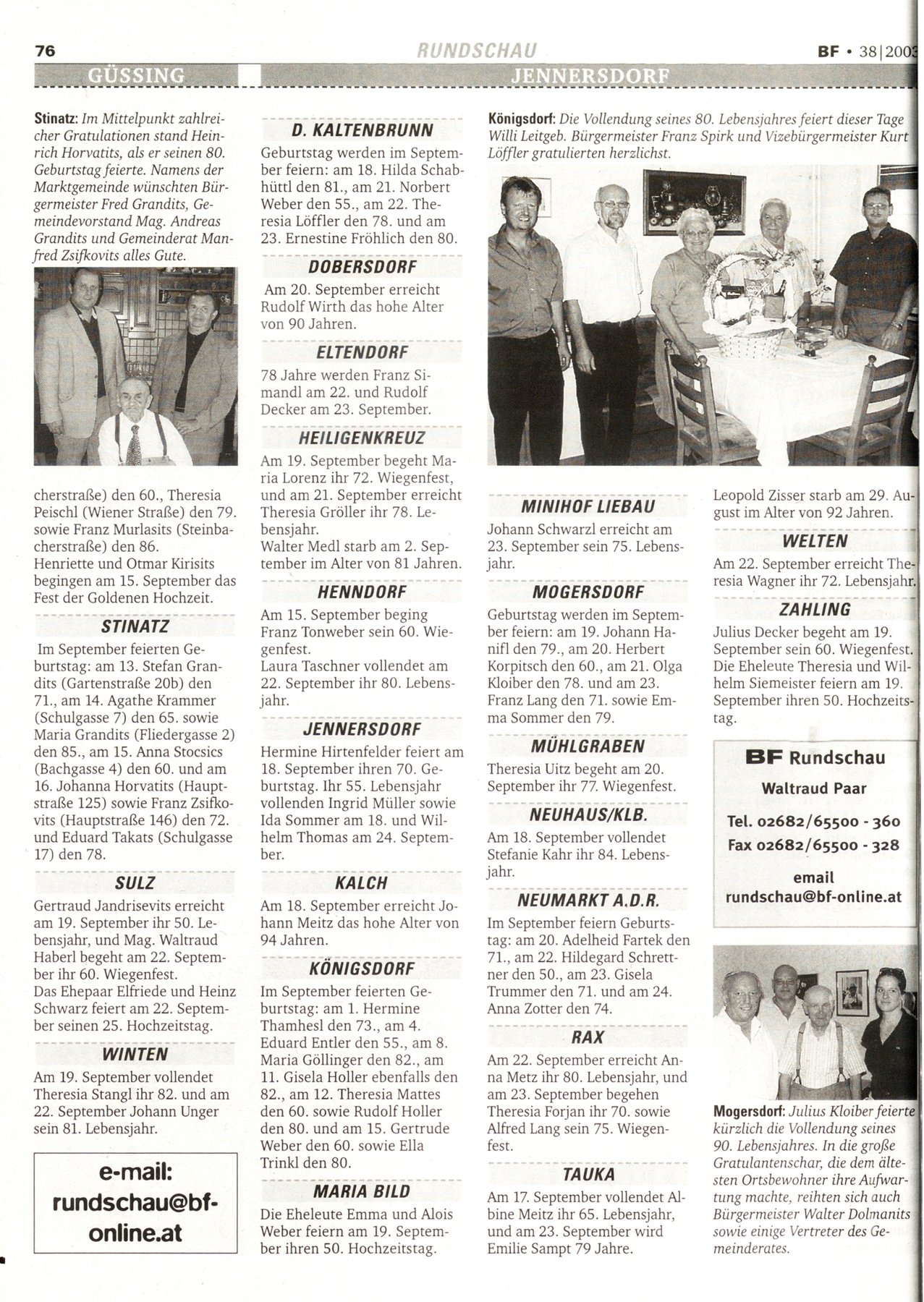 NR.38, 17. September 2003, 73.Jahrgang