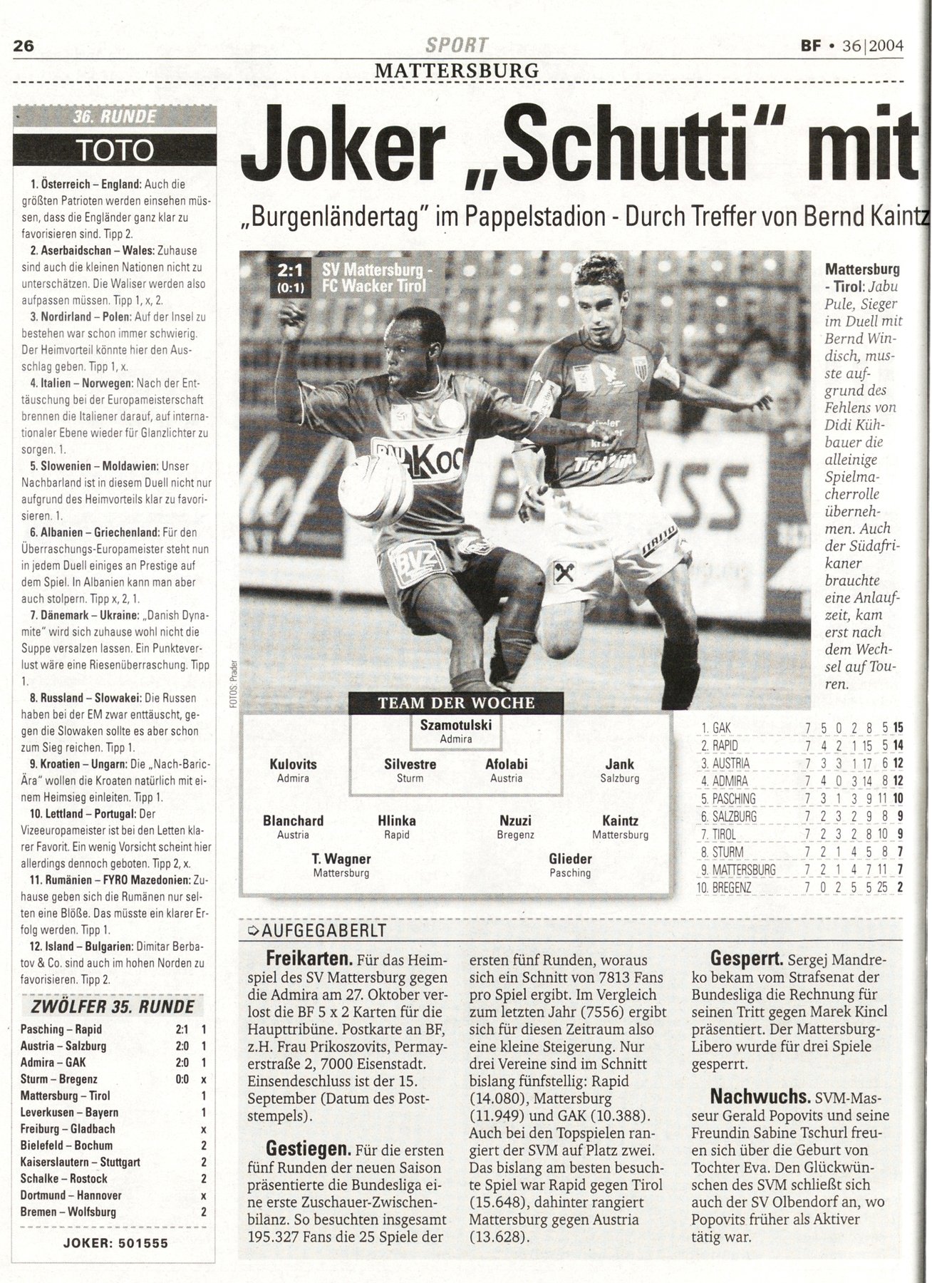NR.36, 1. September 2004, 74.Jahrgang