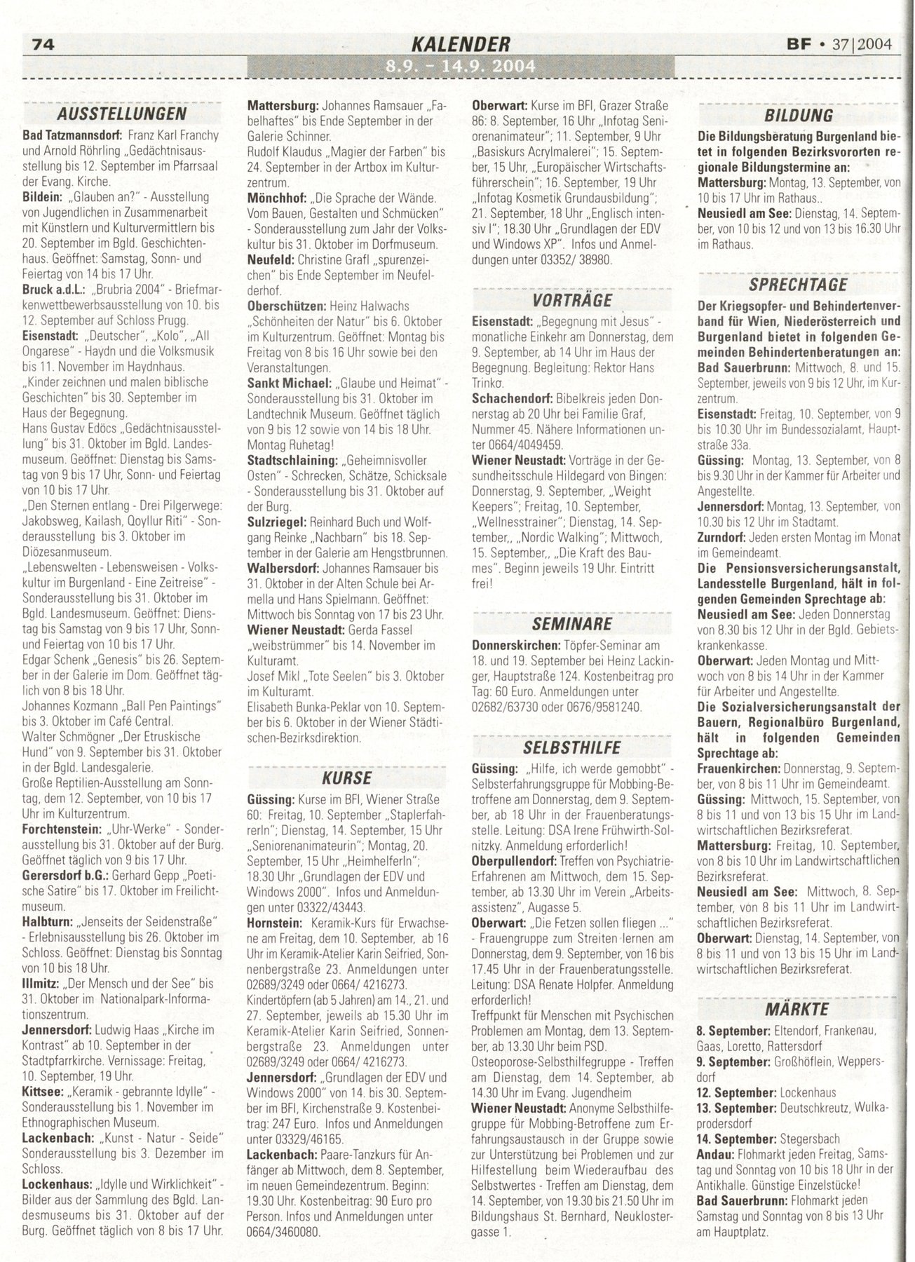 NR.37, 8. September 2004, 74.Jahrgang